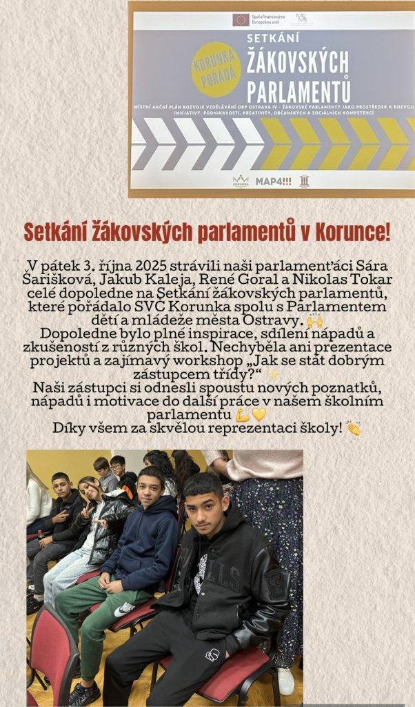 Žákovský parlament na naší škole není novinkou, ba naopak navazuje na dlouholetou tradici, přičemž mnozí členové opakovaně reprezentují zájmy svých tříd.